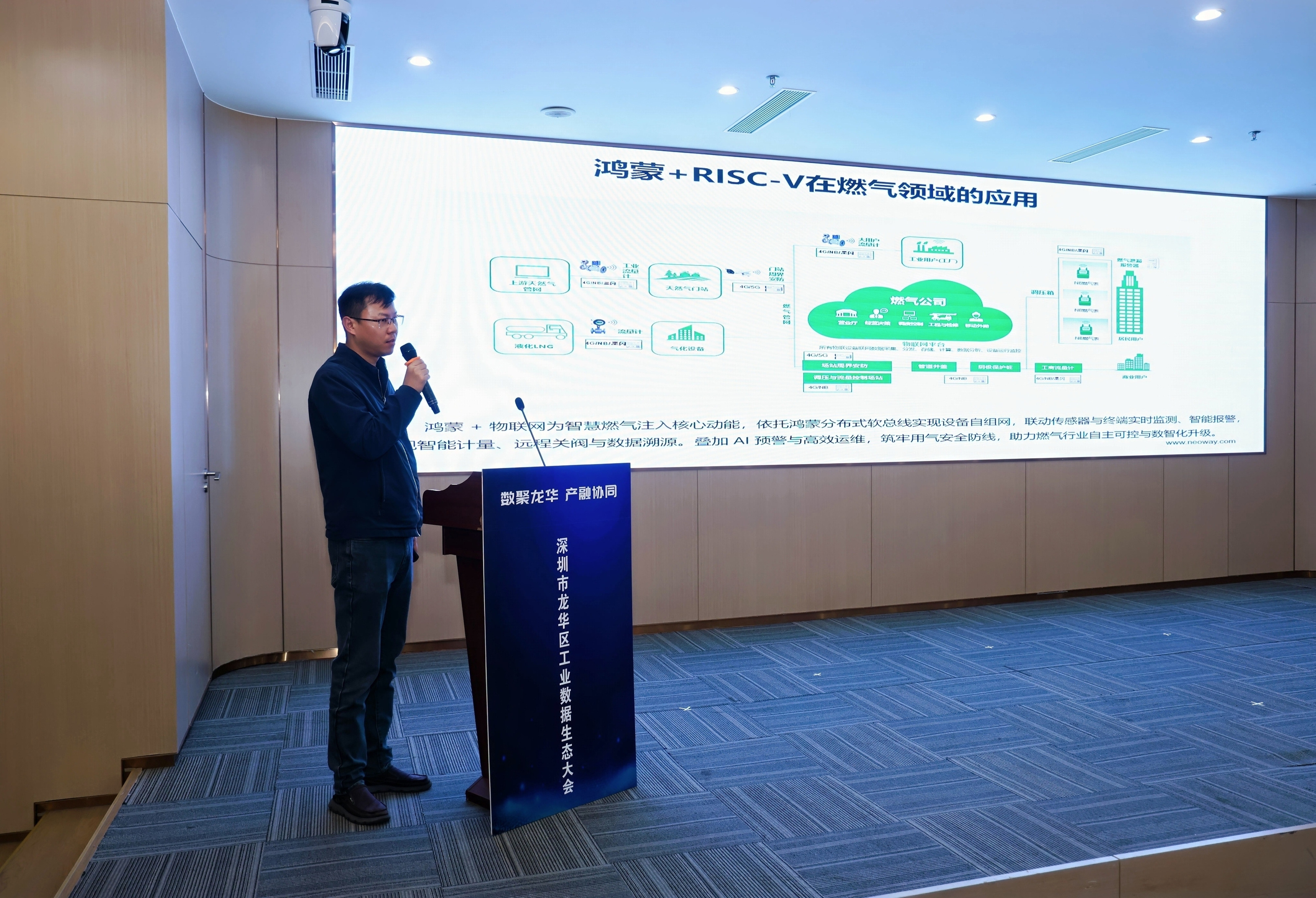 Neoway Technology, invited as an innovator in IoT communications, delivered a keynote speech titled “HarmonyOS + RISC-V: Innovative Practices in IoT Data Elements and Urban Governance Empowerment”. The company highlighted its capabilities and achievements in integrating HarmonyOS with RISC-V, extracting value from IoT data, and enabling smart governance scenarios. Neoway emphasized its commitment to using the “HarmonyOS + RISC-V” technology stack together with its cloud-pipe-device architecture to provide autonomous, secure, and highly reliable data collection, transmission, and processing solutions for industrial and urban governance applications—helping customers achieve device connectivity, data-driven operations, and intelligent upgrades.